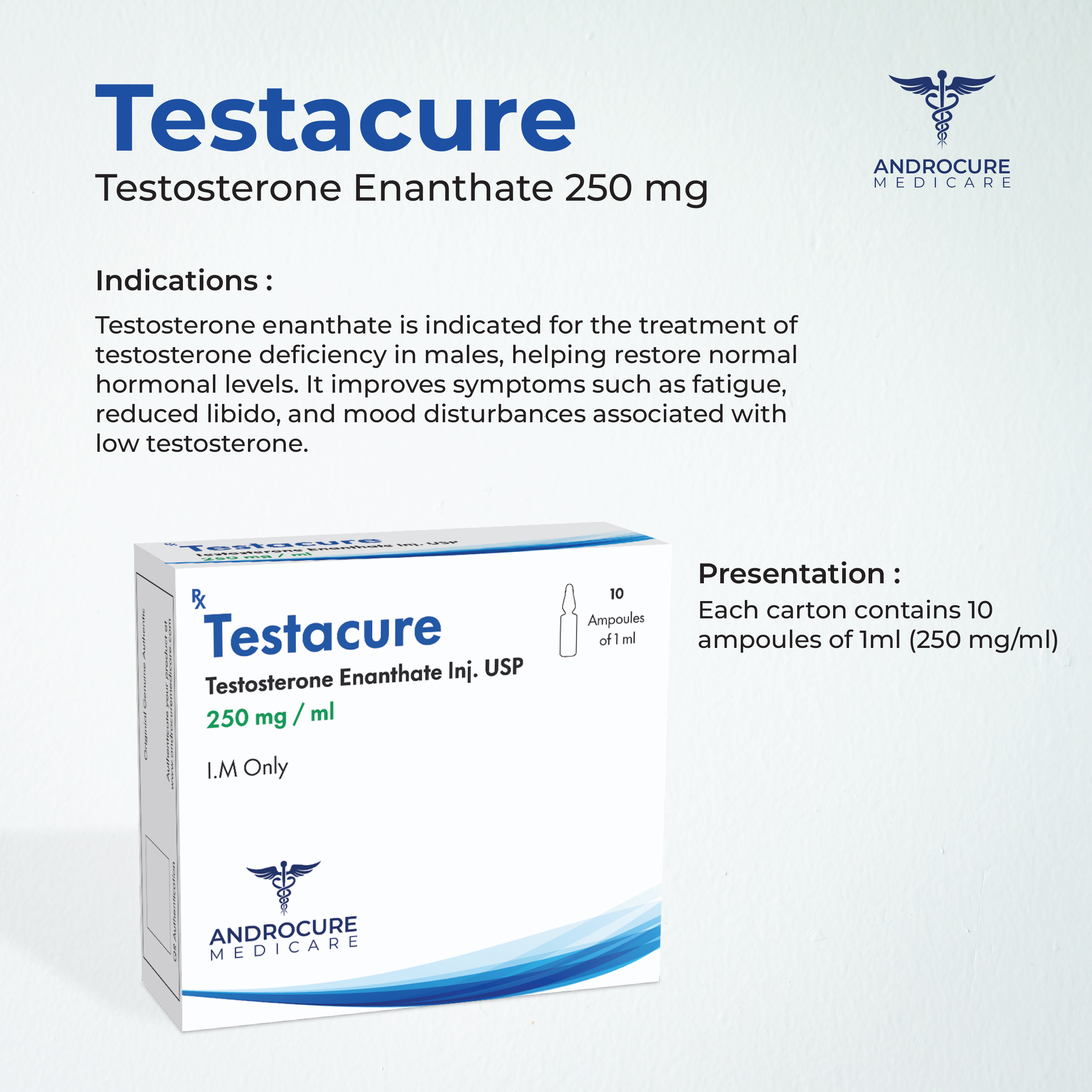 Testacure is indicated for use in hormone replacement therapy, rejuvenation therapy, panhypopituitarism and female breast cancer.